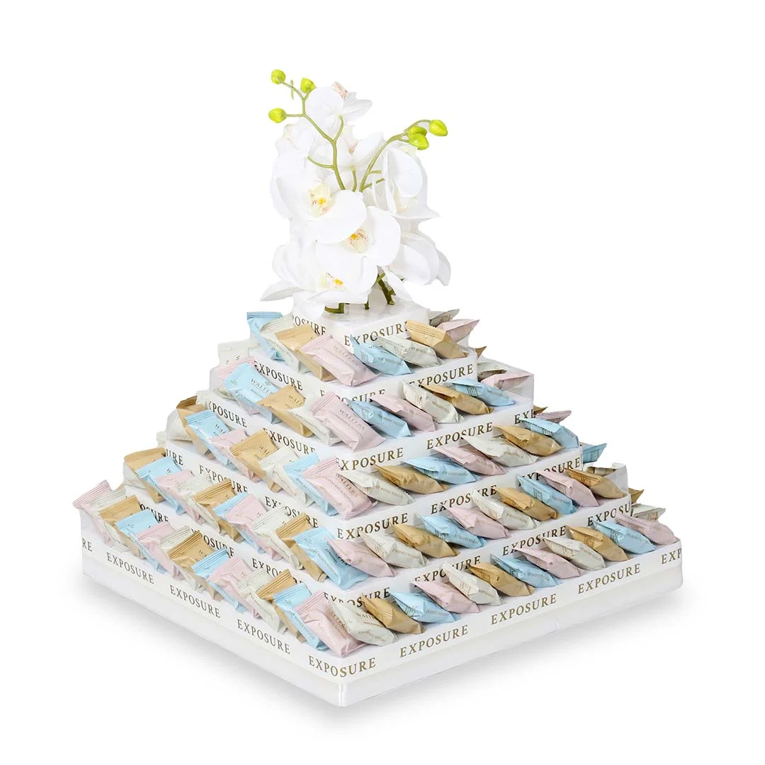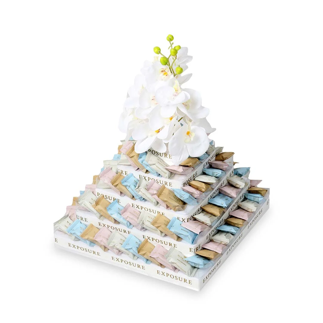 An elegant chocolate serving arrangement featuring 100 pieces of hazelnut...