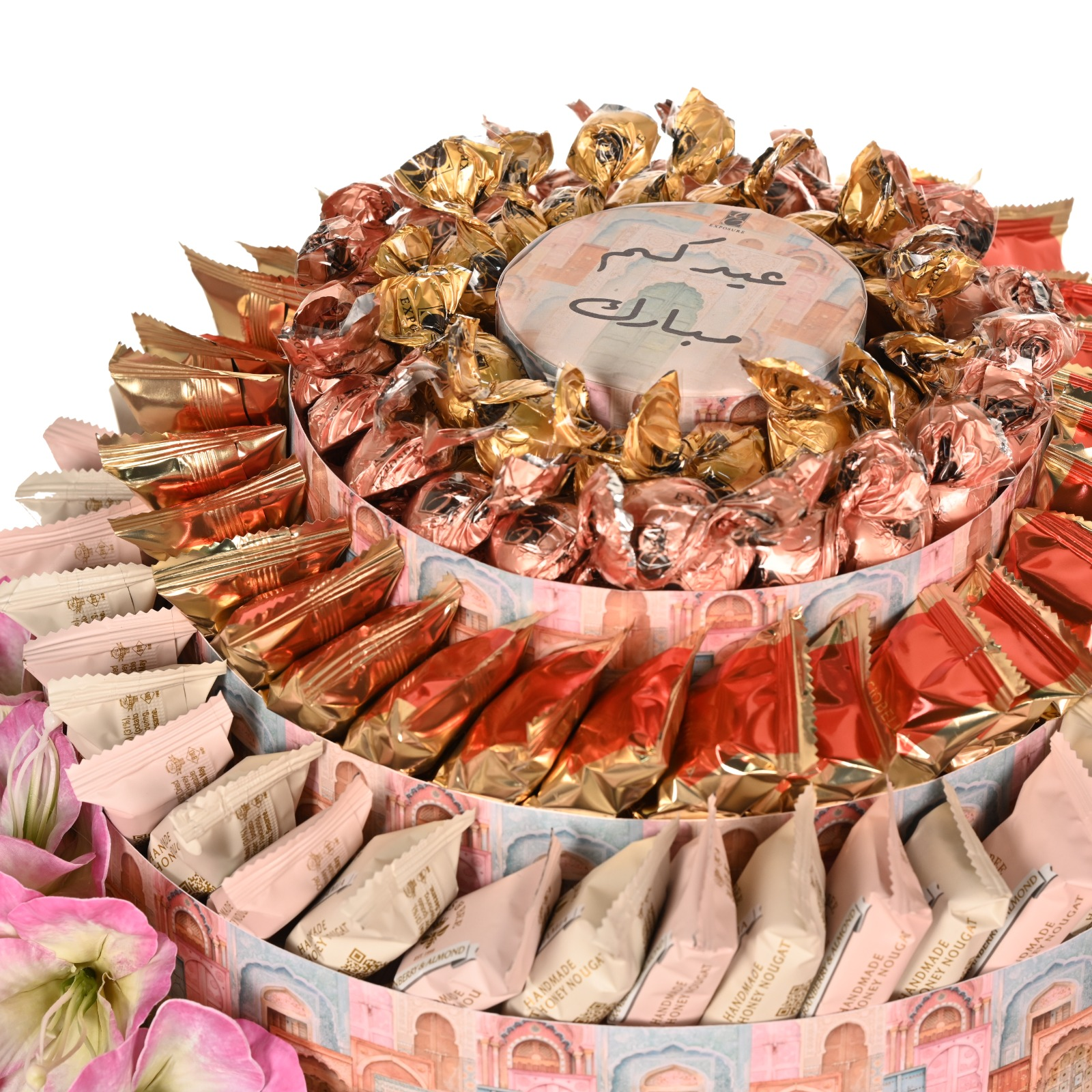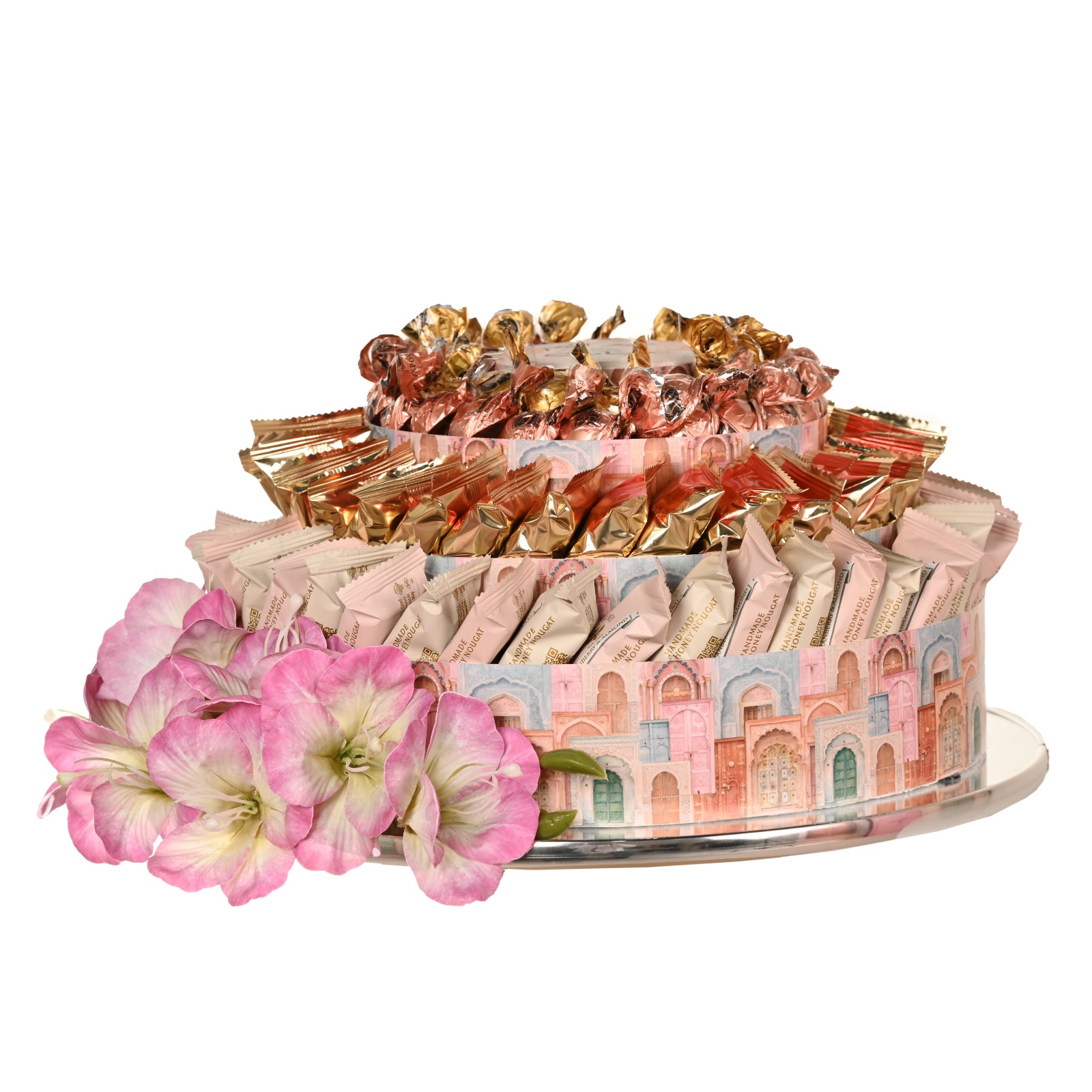 An elegant mirror tray filled with 103 pieces of selected assortment premium
