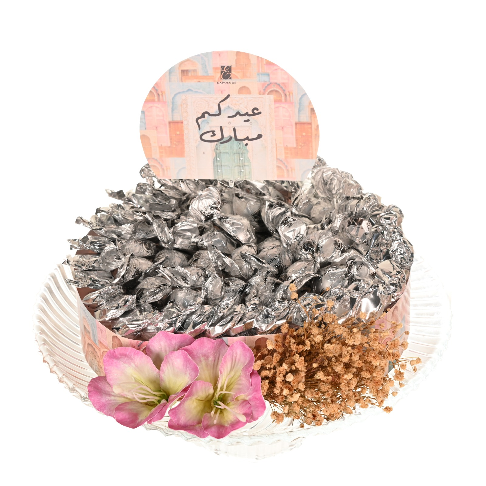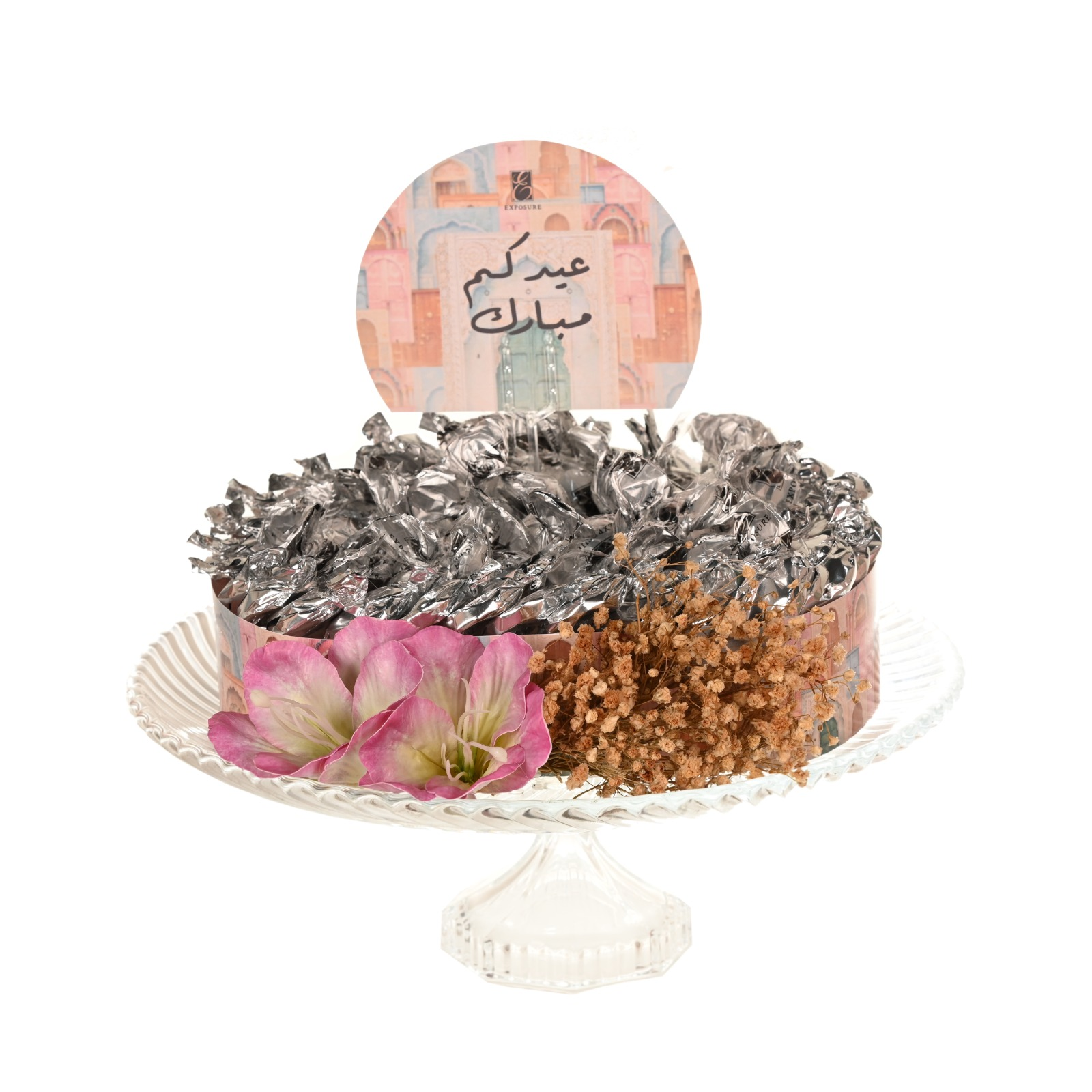 chocolate and Belgian toffee. Beautifully decorated with floral accents and an Eid
