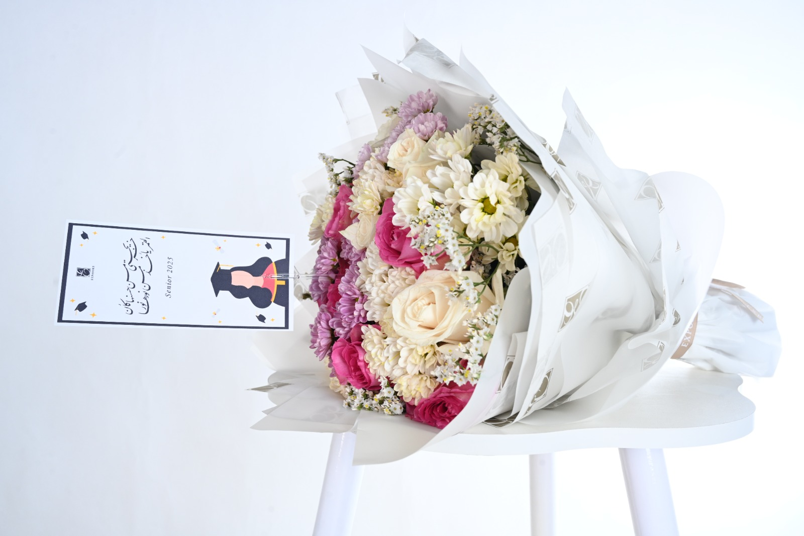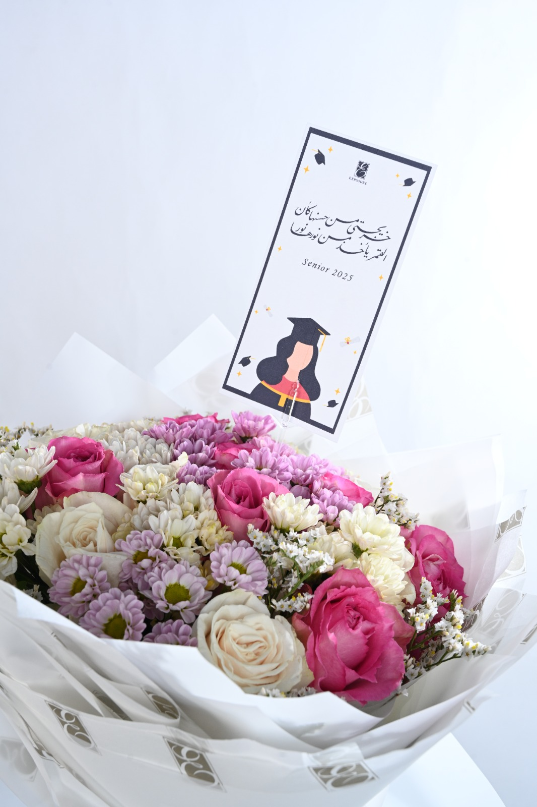 An elegant graduation Bouquet specially designed to celebrate the Success of graduates .This Bouquet combines beautiful Pink and cream flower. Perfect gift to express pride and joy for this special milestone.