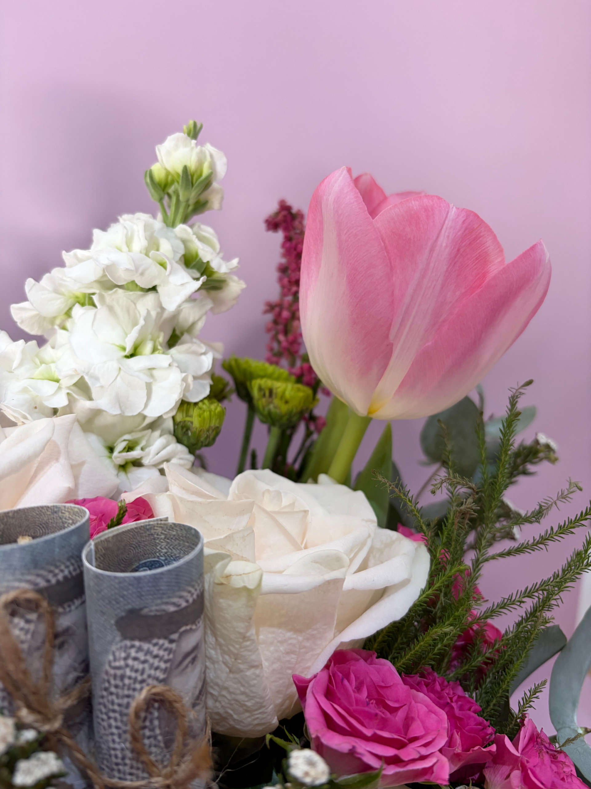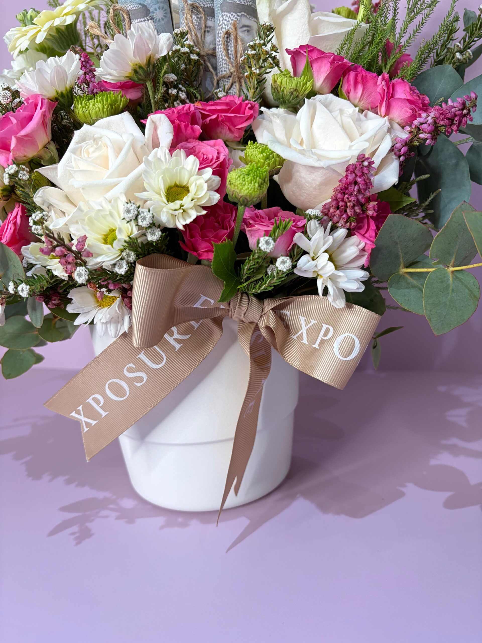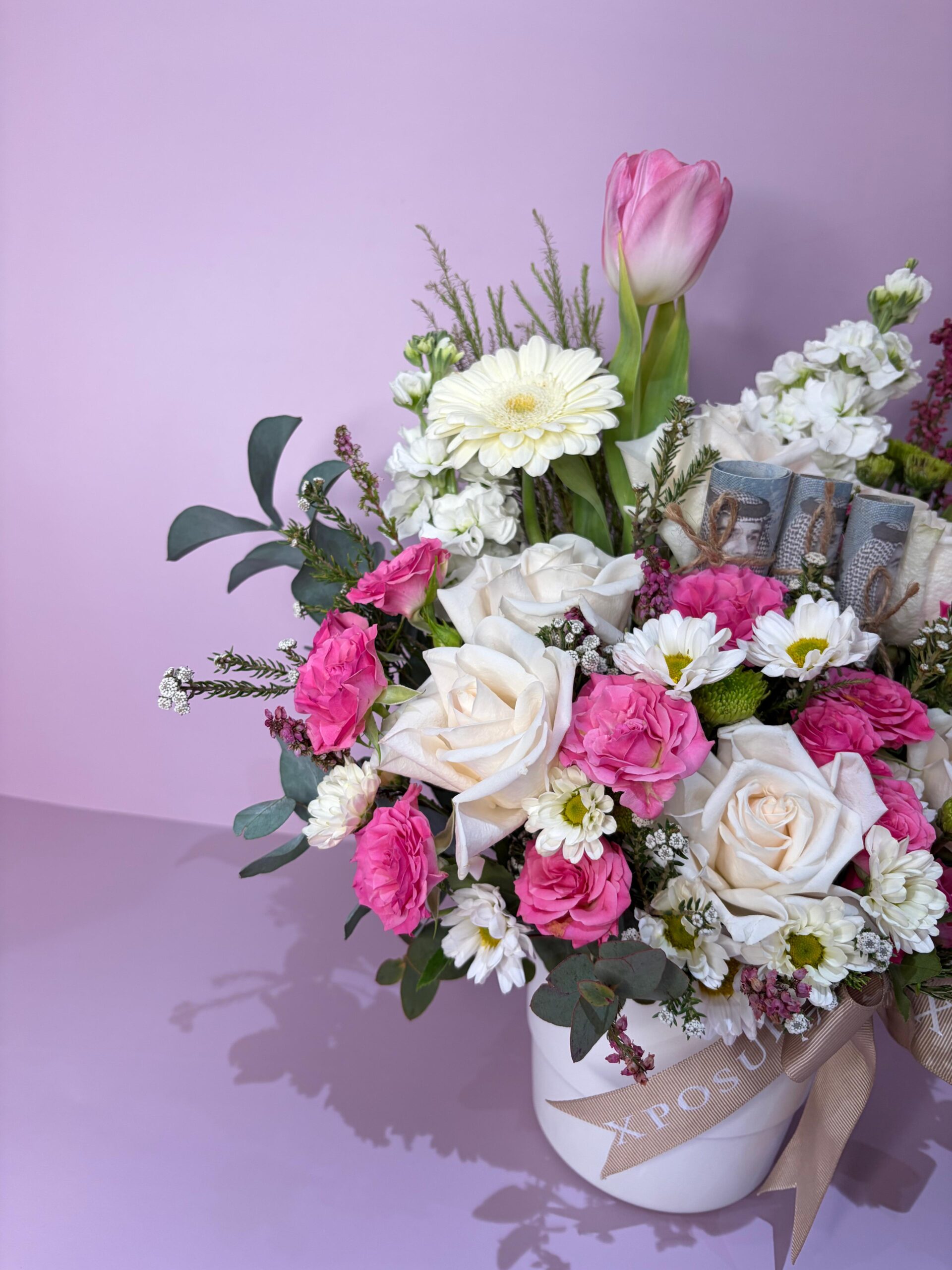 cash gift placed among the blooms to create a luxurious and charming presentation.