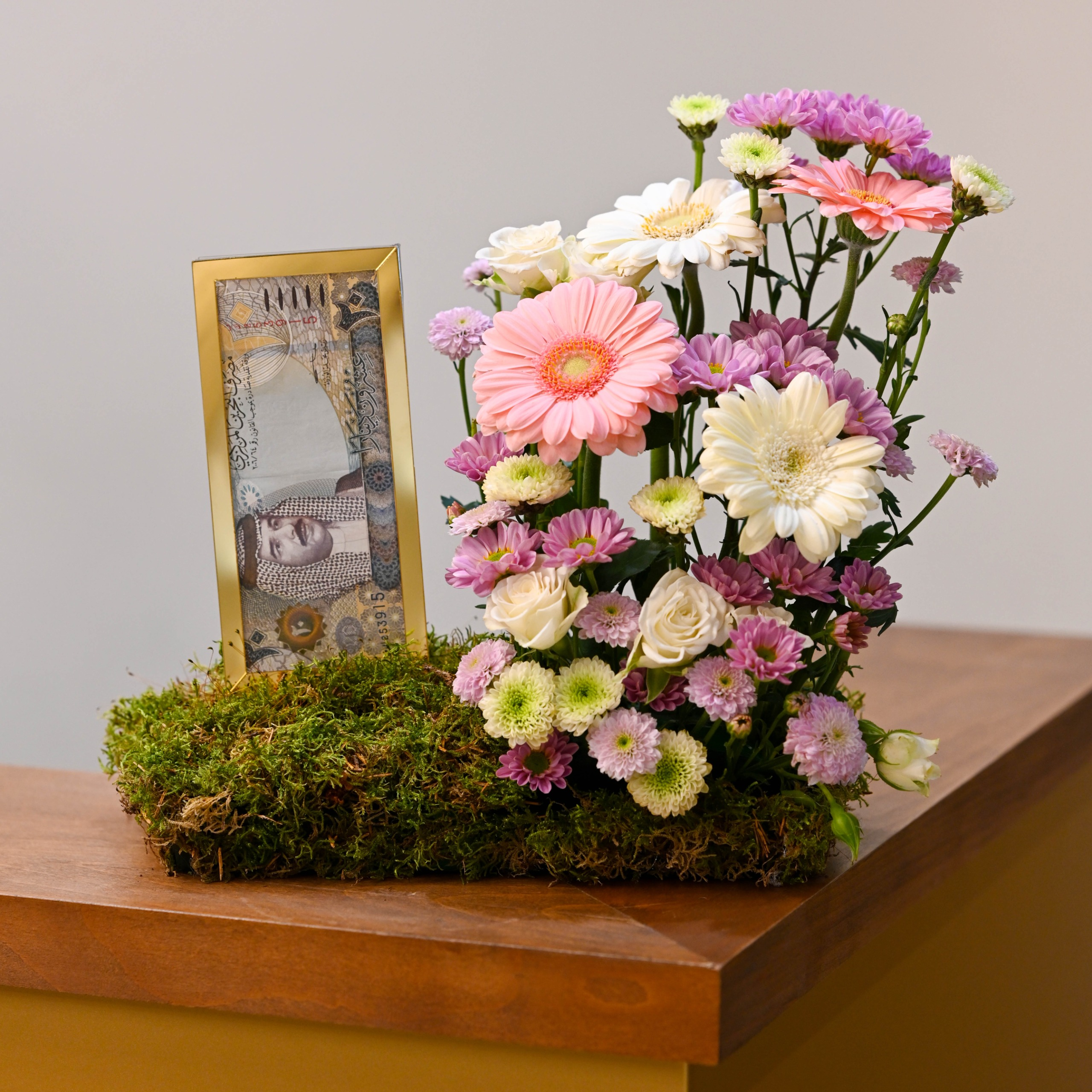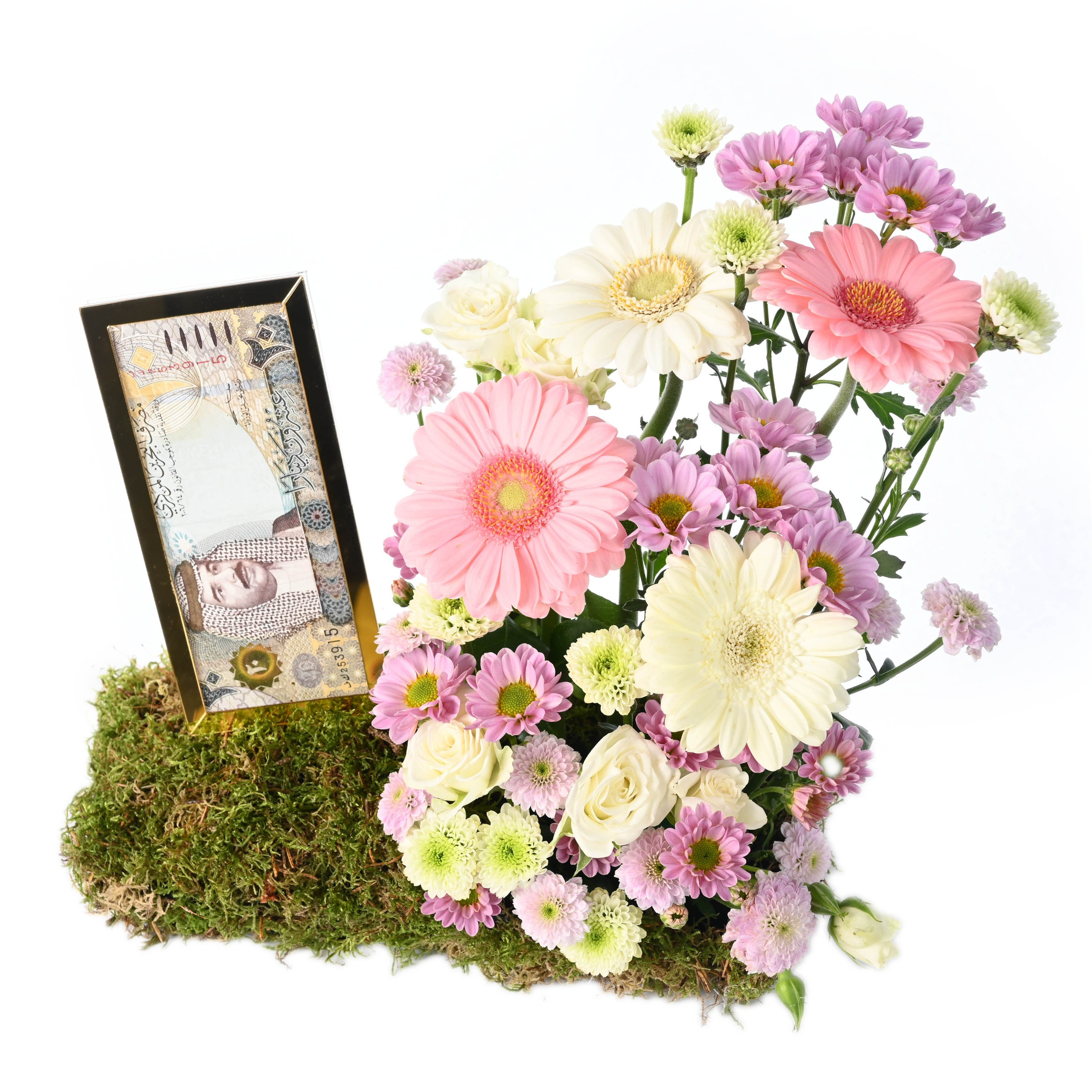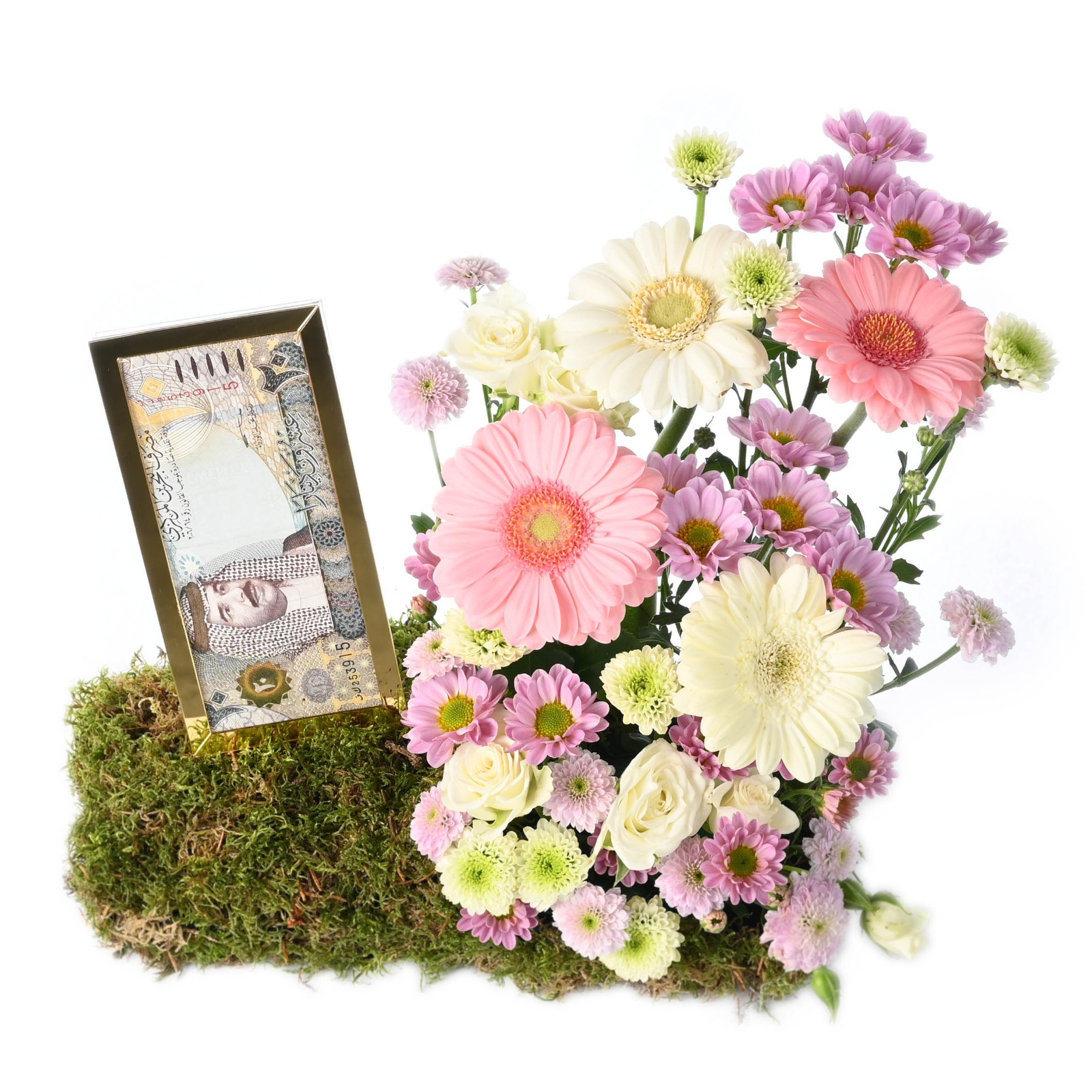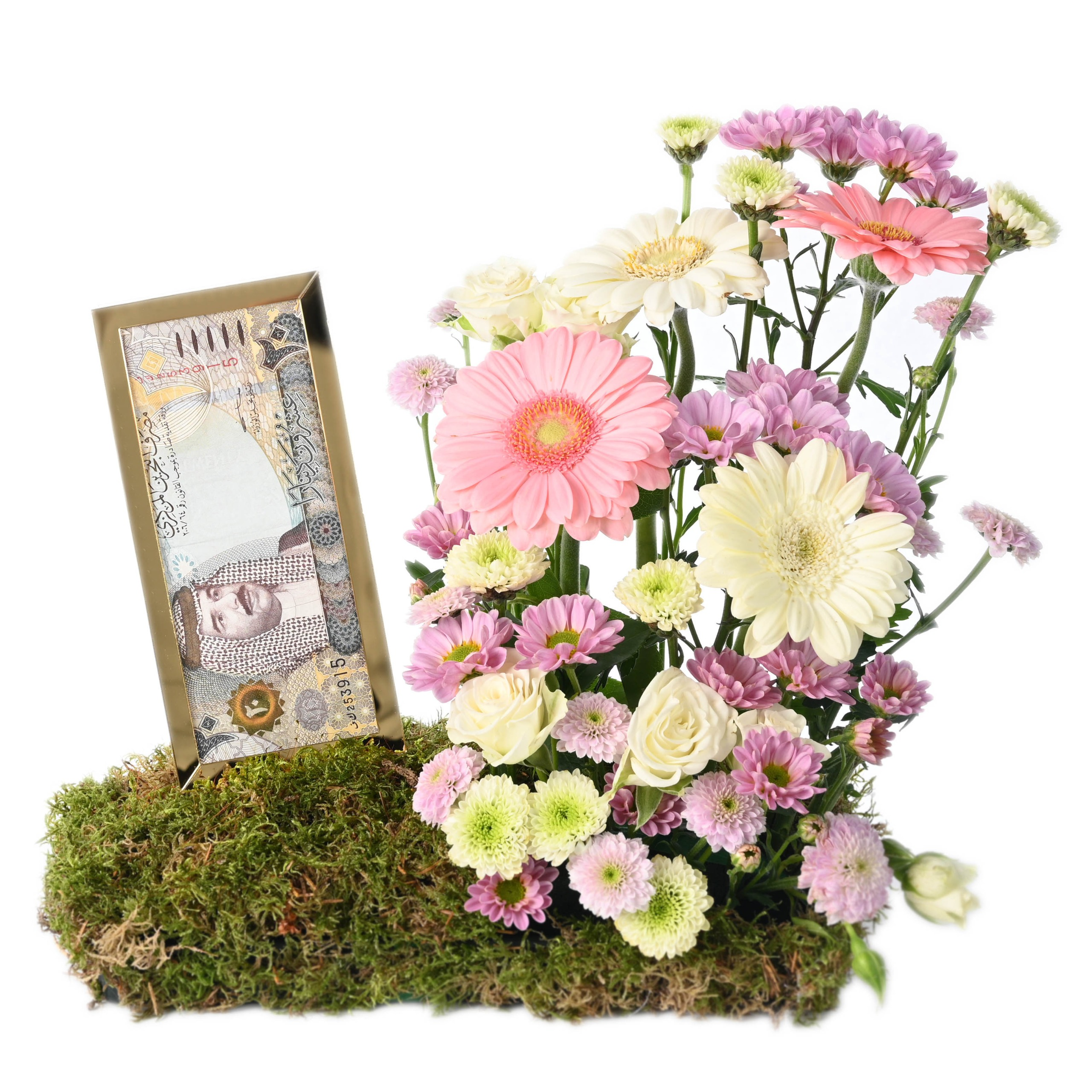 Add a touch of elegance to your Money gift with this beautifully designed white and pink fresh flower, paired with transparent acrylic envelope