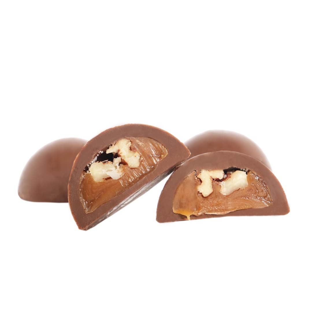 Each pieces perfectly balances rich, Smooth Chocolate with gooey salted Caramel and Crunchy Pecan bits. Pieces per kg 105to 110